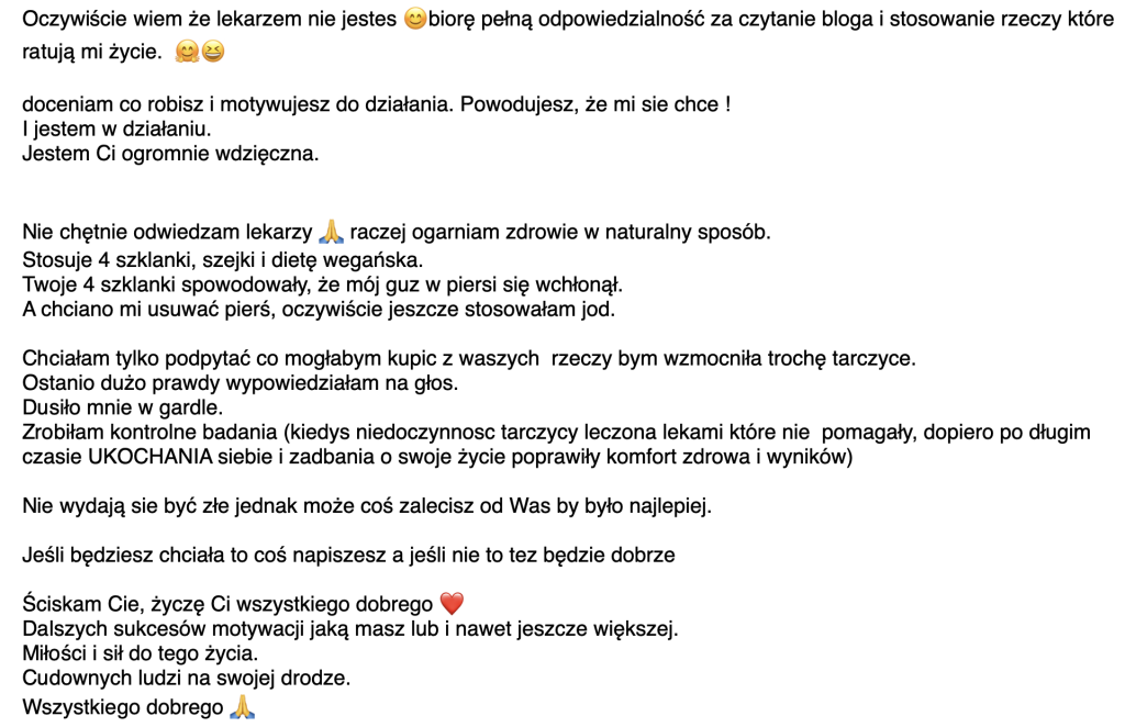 A takich spontanicznych świadectw, jak poniżej, znajdziesz w komentarzach na blogu bez liku.