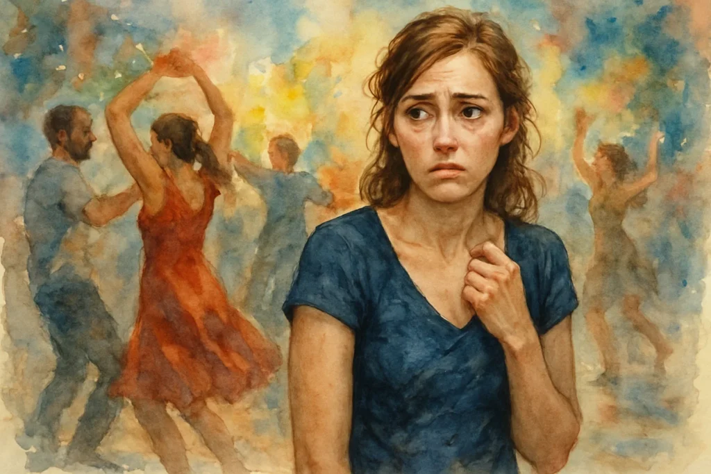 Ale co mnie dzisiaj uderzyło to fakt, że ja się nie potrafię zachowywać naturalnie, nie potrafię tańczyć publicznie, nie mogę (blokada) mówić w tłumie, nie mogę „być”, po prostu być taka naturalna.
