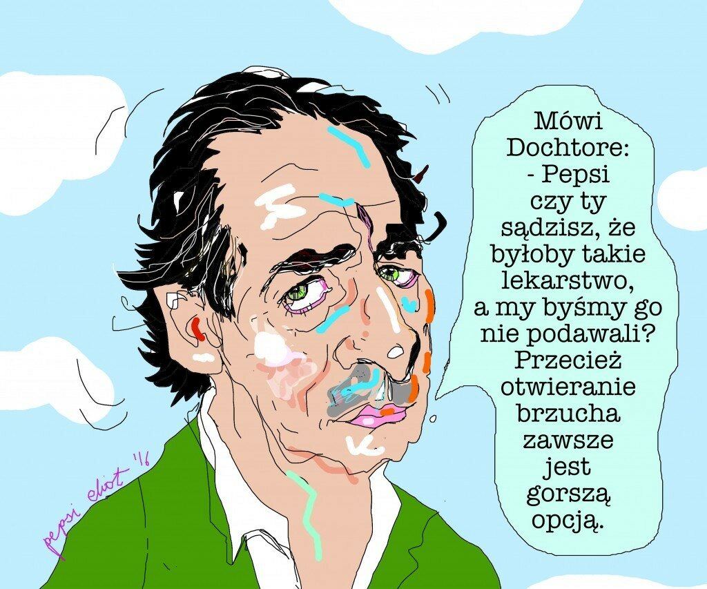 Kochana Pepsi, mój hipochondryczny tata stwierdził, że dokuczają mu kamienie w woreczku. Dochtore zrobił usg i potwierdził kamyki – niedużo. Namówiłam odpornego rodzica na picie ziół na rozpuszczenie. Mama wymieszał a ingrediencje jak szeptucha i podtykała pod nos. Tato po jakimś czasie stwierdził, że bardziej go boli i porzucił zioła. Po jakimś czasie znów wybrał się do dochtore. Ten potwierdził kamyki o zalecił wyrżnięcie. I wyśmiał kwestie naturalnego usuwania o rozpuszczania. Moje gadanie aby spróbował traktowała jak atak. Został umówiony na zabieg na koniec marca. I nagle zaczął się cykać bo nigdy nie leżał w szpitalu. Wtedy ktoś znajomy podał mu przepis na usuwanie kamieni w protokole z oliwą, solą epsom itd. O dziwo wykonał i sporo z niego wyszło. Ale możliwe że to (tak jak piszesz w swoich innych postach) nie kamienie… Skonsultował się z innym dochtore 5 min za 150 złociszy, który wyśmiał oczyszczanie i kazał ciać. A tato dalej czuje ucisk. W tym wypadku wirus pomógł bo do operacji nie dojdzie. Kazałam mu pić zioła żółciopędne, sok z jabłek z octem jabłkowym i grejpfrutowy. Na kurację z rzepą na bank nie pójdzie! Co jeszcze mogę podpowiedzieć odpornemu hipochndrykowi? Help! Nie chcę słuchać że umrze przy operacji!