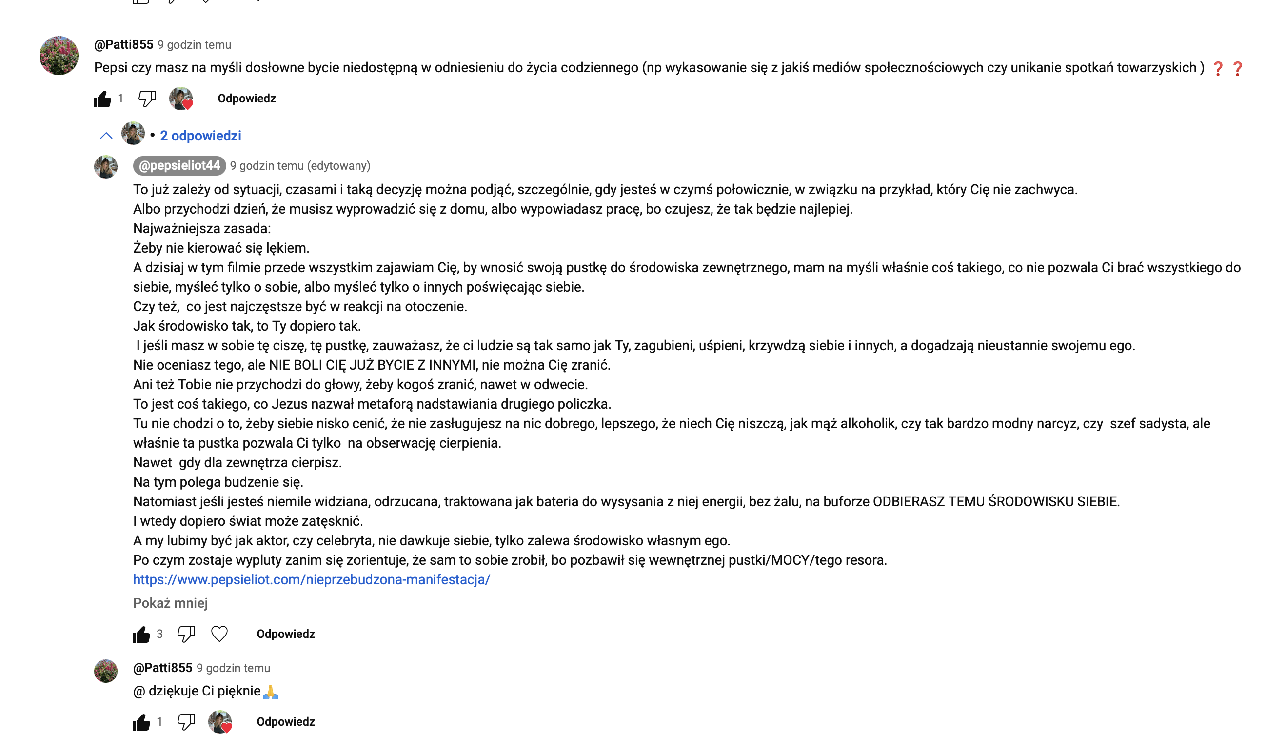 Z dyskusji pod filmem:
