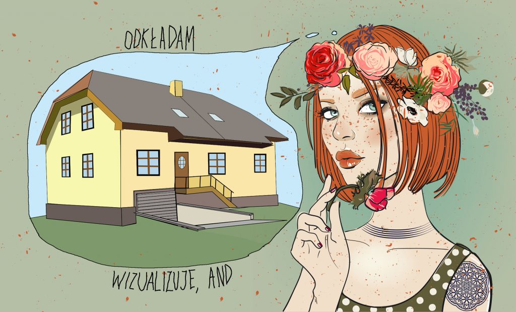 Na nic marzenia „o możliwości zamieszkania w pięknym domu z ogrodem i przestrzenią, bez konieczności zaciągania kredytu na 40 lat”, gdy nie rozumiesz, że marzenie może zamienić się w cel tylko wtedy, gdy masz szczerą intencję. No i ufasz sobie, że jesteś do tego zdolna. Gdy myślisz pozytywnie, a nie gonisz w kółko myśli, które wpędzają Cię do czarnej dziury.