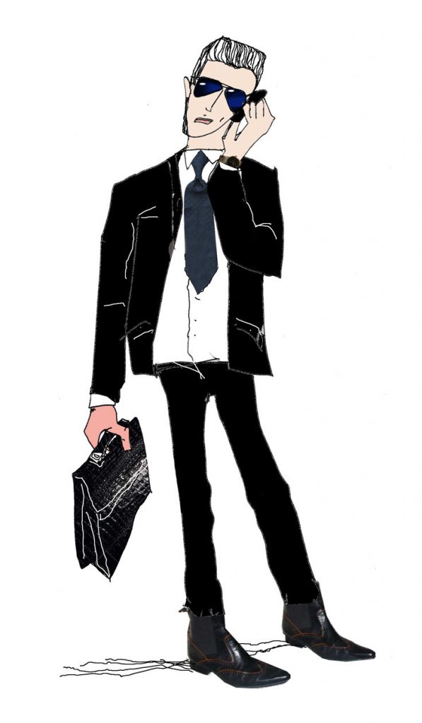 Ubrany w lakierowane buty i pretensjonalnie drogi (kredyt konsumpcyjny) zegarek, z wiecznie wkurzoną miną, orężem z ironii i komentarzy wypowiedzianych tonem eksperta.
